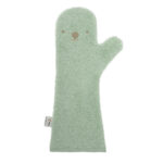 Zodra de handschoen nat wordt, vormt ie zich naar je huid en wordt je hele onderarm stroef. Zo heb je meer grip op je glibberige baby tijdens het douchen.