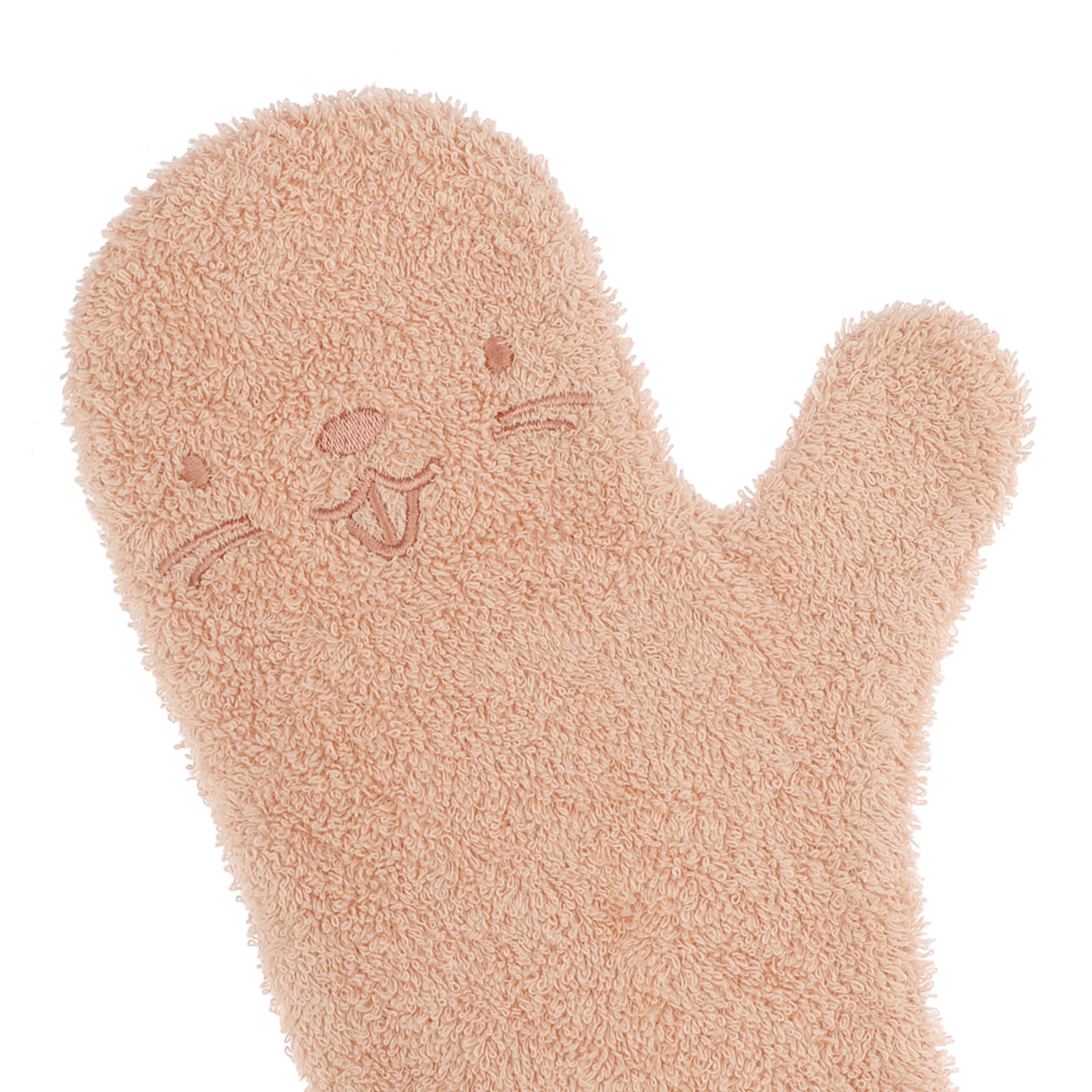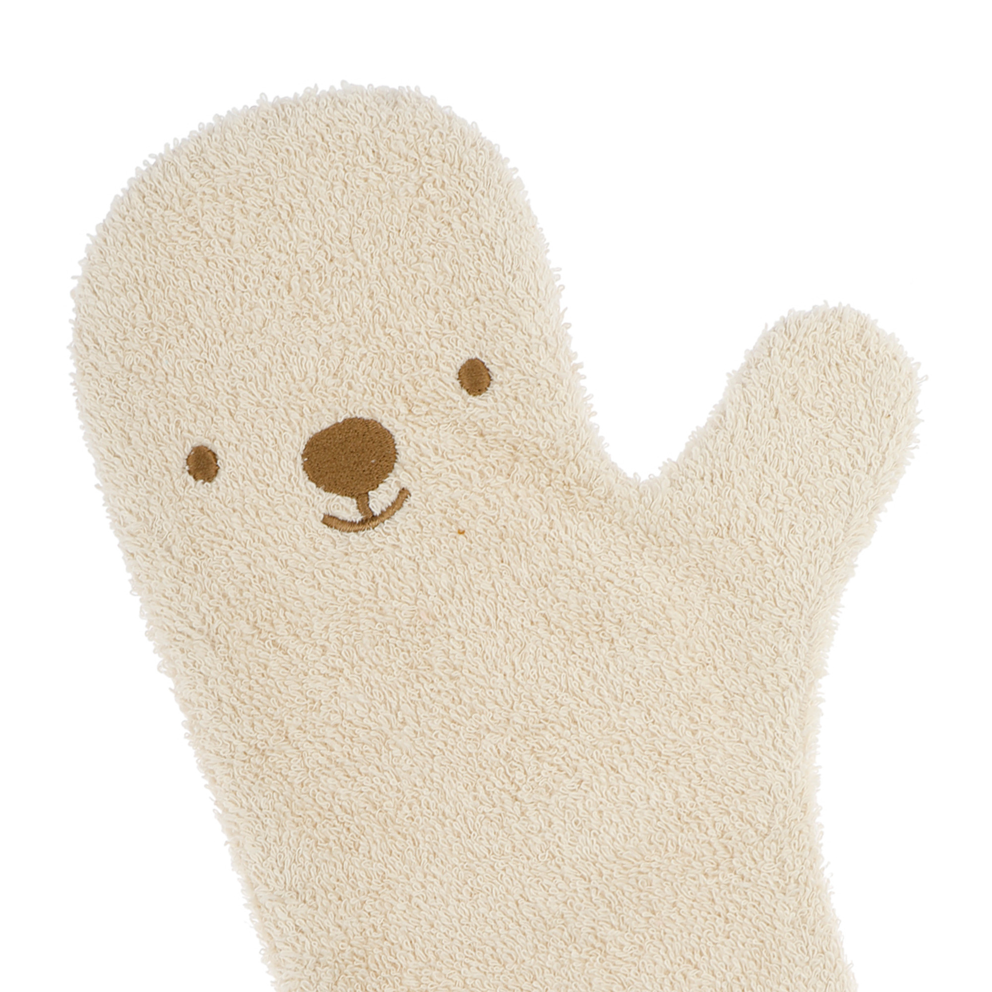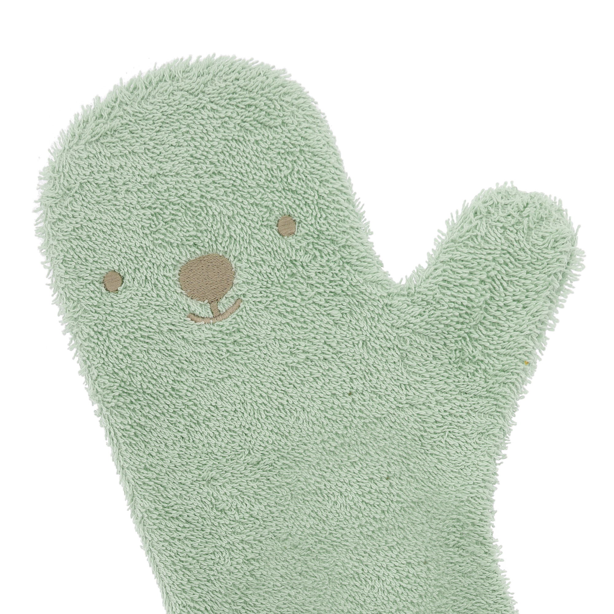 De Baby Shower Glove is in meerdere kleuren verkrijgbaar en de verschillende designs bestaan uit gezichtjes van waterdieren.