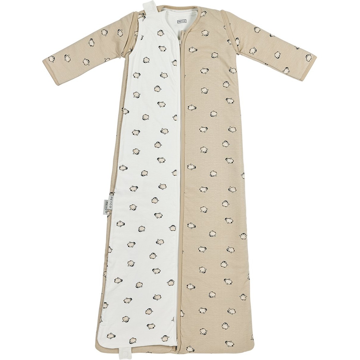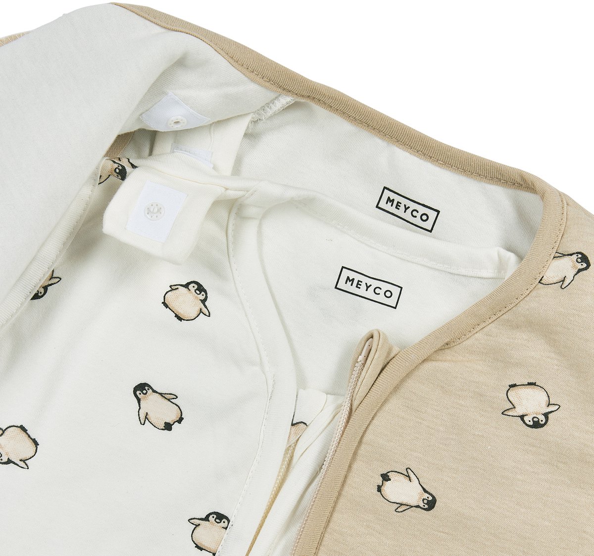 De binnen- en buitenslaapzak hebben samen een TOG-waarde van 3.0. Hoe hoger de TOG-waarde hoe warmer. De slaapzak heeft een veilige pasvorm, doordat hij goed aansluit bij de hals en de armpjes. Het gezellige printje met bosdieren mix en match je perfect met de complete Meyco Baby collectie.