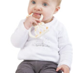 De samenstelling is op basis van 100% natuurlijk rubber (afkomstig van de heveaboom) en behalve dat het gewoon een heel ‘lief’ speeltje is – zijn de grootte en de vorm ideaal voor baby’s grijpreflexen.