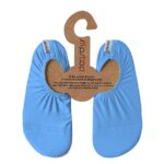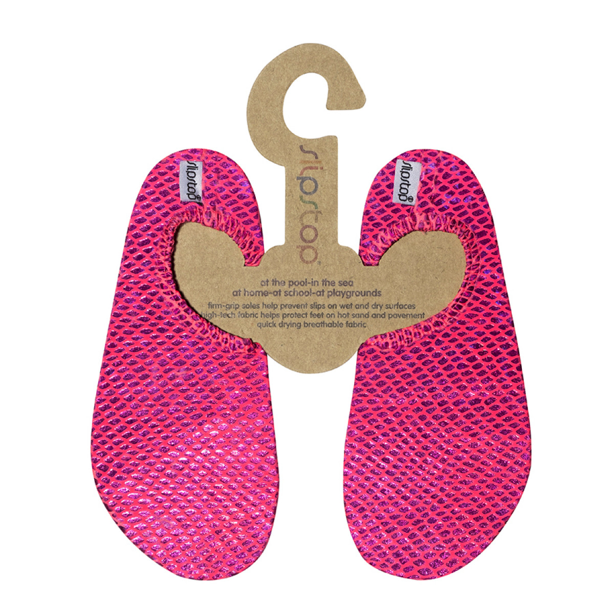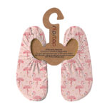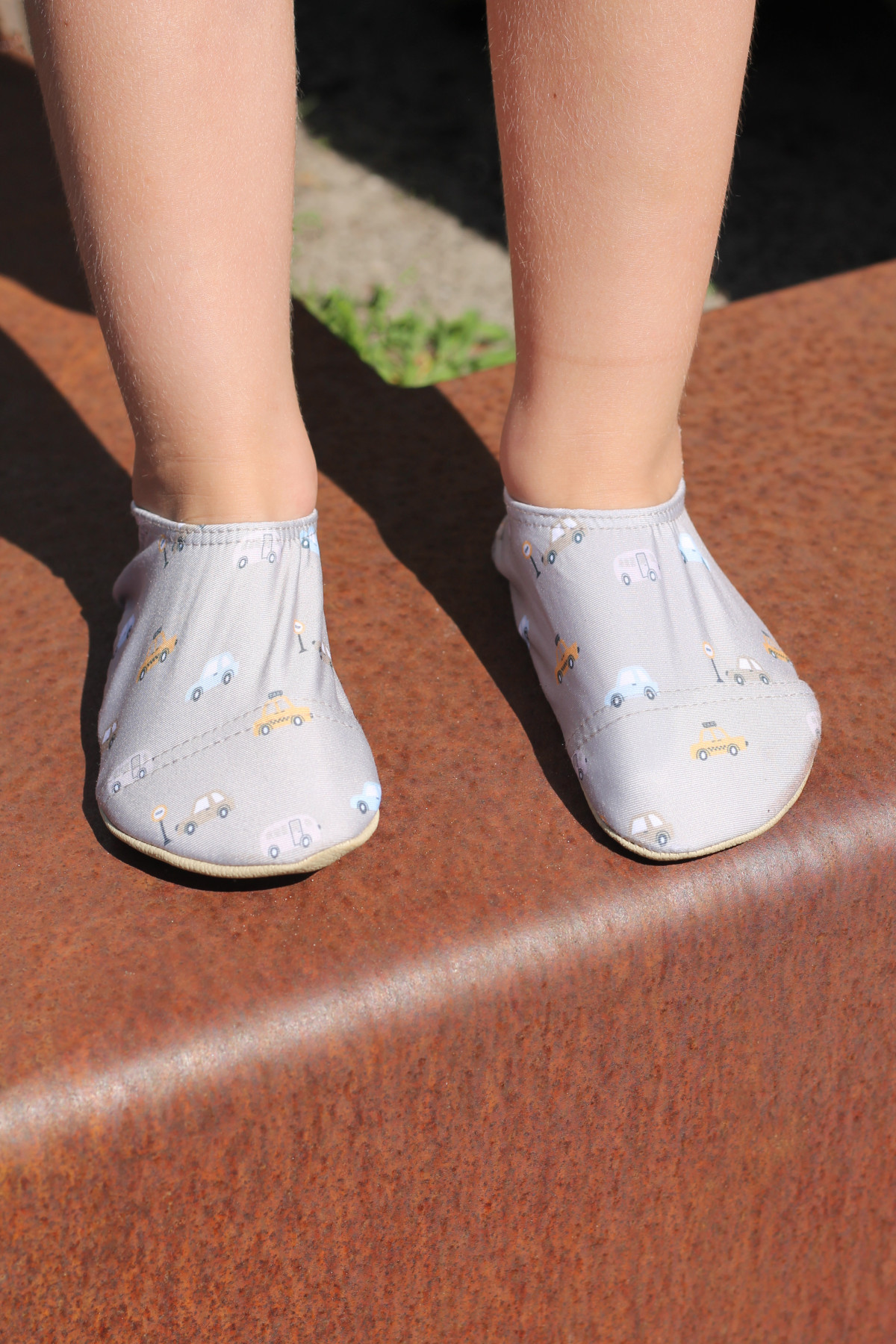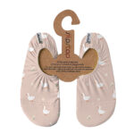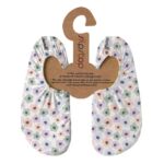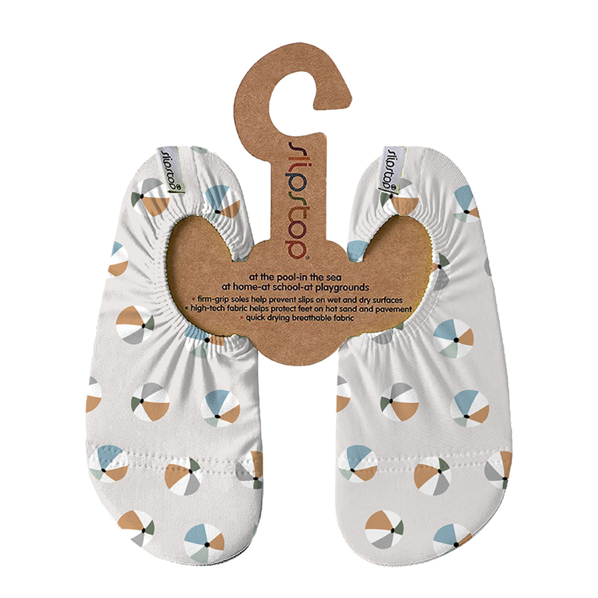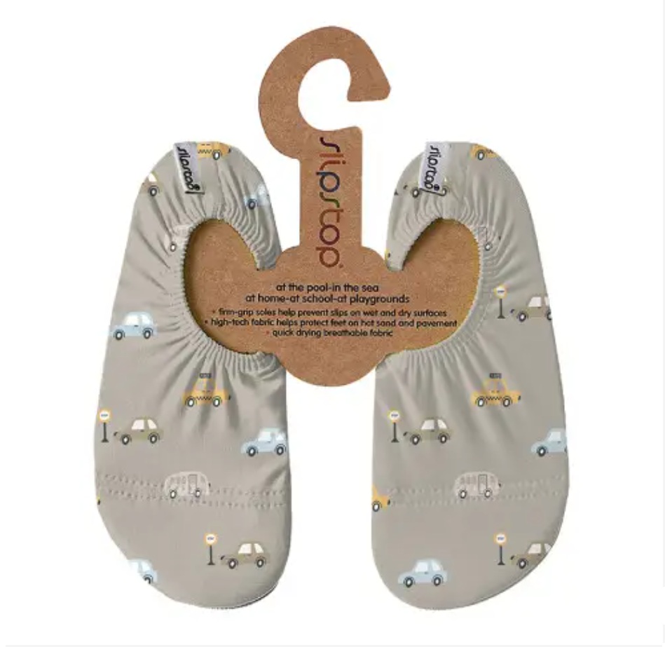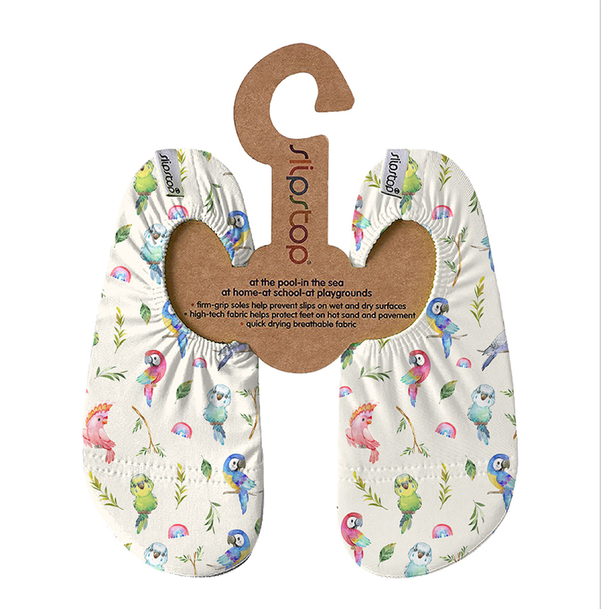 Slipstop is een licht, waterafstotend, elastisch ‘schoentje’ met antislipzool. Je kindje krijgt geen zweetvoetjes door het ademende materiaal. Ze zijn gemaakt van een snel drogende UV beschermende stof, in vrolijke kleuren en dessins.